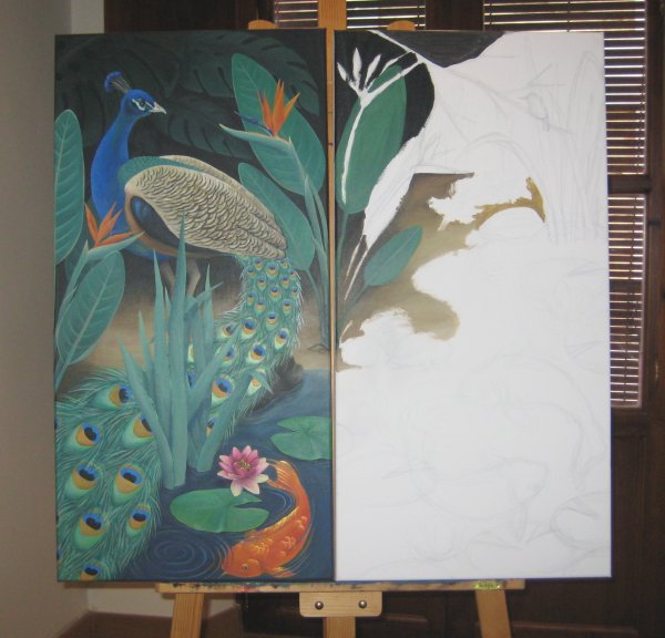 The Paradise Tryptych has been slowly progressing, or at least the second panel has. And I have so far resisted 'tweaking' the first panel, but I know I won't be able to hold out forever. As for the third panel, I know what needs to be done with it but I probably won't make a start on it until the first two are complete. Here are some pictures to show the progress made over the last few weeks: